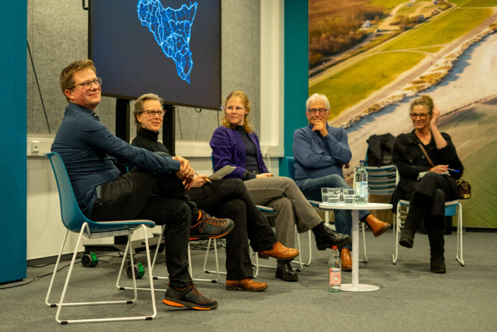 Im Anschluss fand eine Podiumsdiskussion zum Thema „Knowledge transfer in complex scientific contexts“ statt. Julia Ahrend, Salvatore Granata, Prof. Dr. Silja Klepp und Dr. Felix Gross diskutierten über Herausforderungen und Möglichkeiten der Wissensvermittlung zwischen Wissenschaft, Gesellschaft und künstlerischer Praxis.